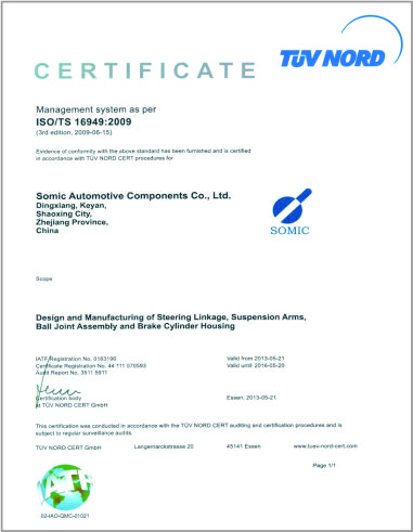 公司已先后通過IATF16949質(zhì)量管理體系認證、ISO/14001環(huán)境管理體系認證和OHSAS18001職業(yè)健康安全管理體系認證。是“國家高新技術(shù)企業(yè)”“行業(yè)龍頭企業(yè)”和“全國百家優(yōu)秀汽車零部件供應(yīng)商”。